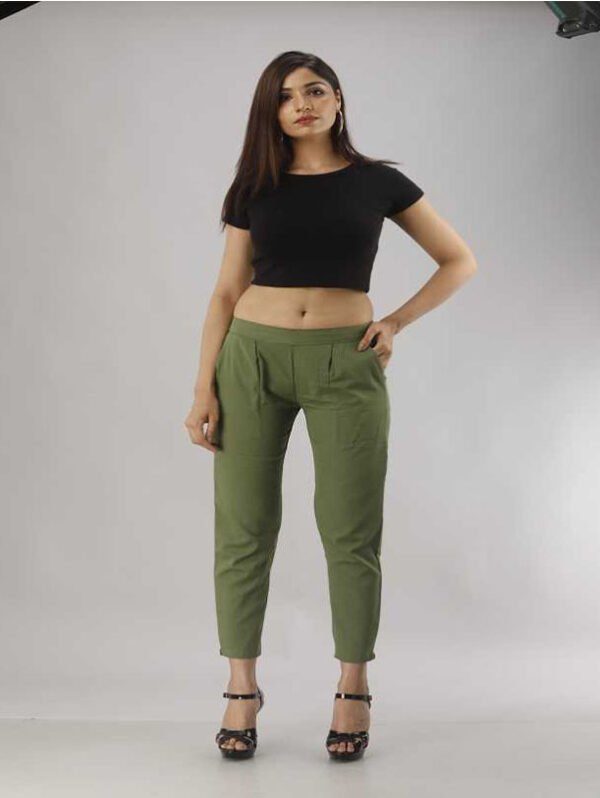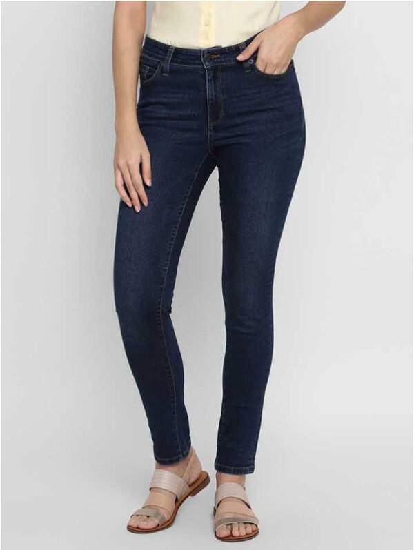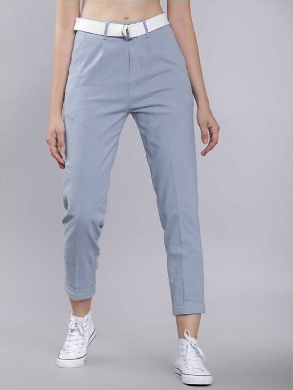Regular Fit Women Blue Cotton Lycra Blend Trousers