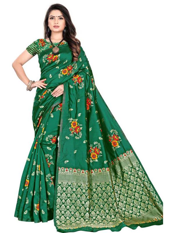 Printed Banarasi Jacquard, Art Silk Saree (Green)